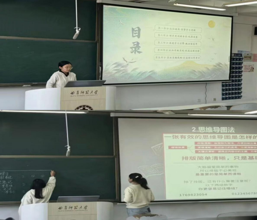 活动开始,颜玉芳向同学们引入了费曼学习法、RIA阅读法、SO3R阅读法、海马体学习法等概念,系统地介绍了如何激活已有知识、增强抗遗忘能力来提高学习效率,通过巧用学习方法,告别无效努力。随后,陈雨暄着重论述了整理课堂笔记的重要性,并为同学们提供了如康奈尔笔记法,思维导图法等等多种整理课堂笔记的方法。