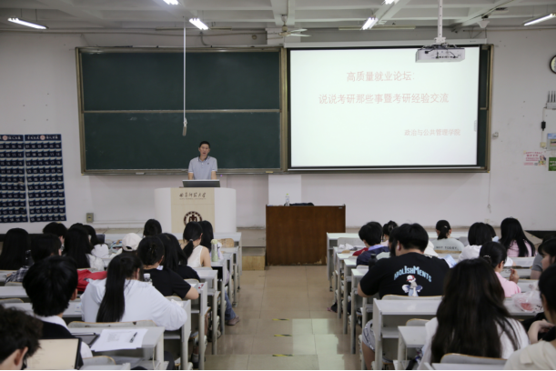 于JA205成功举办高质量就业论坛:考研宣讲暨考研经验交流会。本次活动由2022级辅导员王元如主持,特邀“考德上研”机构资深讲师及学院5位上岸学长,围绕考研形势分析、备考规划、院校选择及调剂策略展开深度分享,2022级全体同学积极与会。