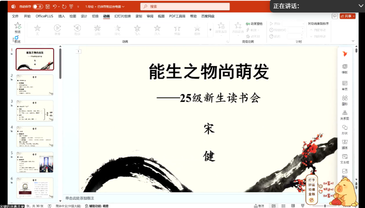 本次交流会分别邀请宋健老师和程香丽老师,以及2023级哲学班李一嘉、2023级政治学与行政学二班张继政、2024级哲学二班秦正垚、2024级政治学与行政学一班江百舸四位优秀师哥师姐向2025级新生分享读书心得以及学习经验。