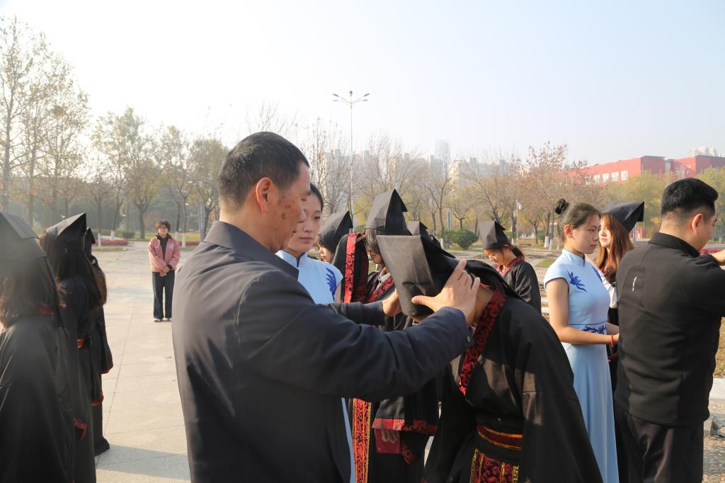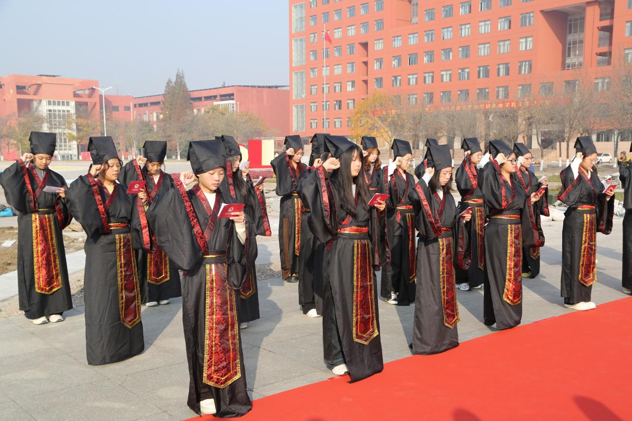 在日月广场孔子像前隆重举行成人礼活动。学院党委副书记张忠凯、辅导员王元如老师及马腾老师亲临现场,2025级适龄学子悉数参与。