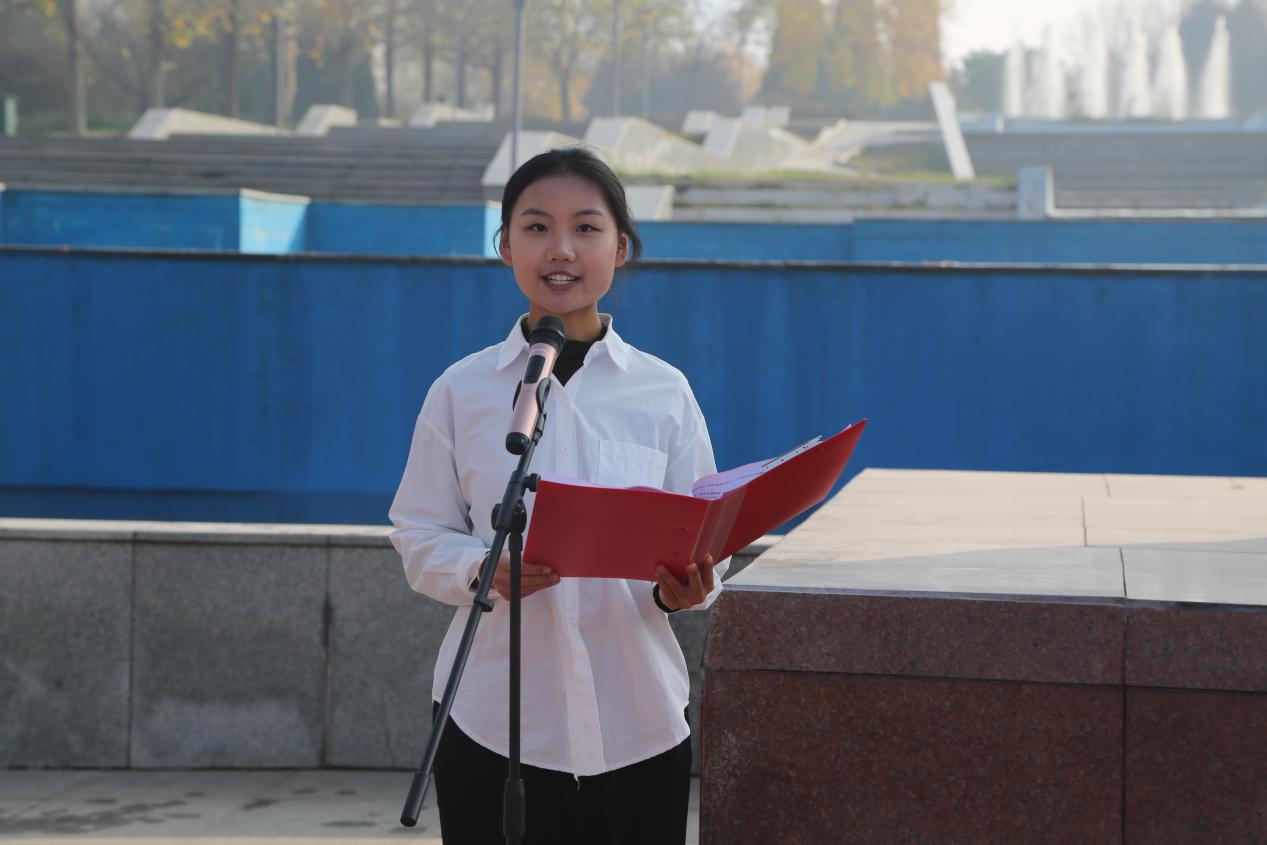随后,优秀学生代表李霞登台发言。她紧扣学院“坐下来能写、站起来能说、走出去能做”的育人理念,郑重承诺:“今后,我将与全体同学携手共进,以青春朝气、奋进姿态,践行初心、不负重托,在成长之路上书写属于我们这一代人的璀璨篇章!”其真挚恳切的发言赢得了现场阵阵热烈掌声。