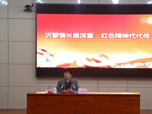 为了在广大师生中深植红色基因,增强党史学习教育实效,4月1日下午,“沂蒙母亲”王换于的孙女、百岁红嫂张淑贞的女儿于爱梅老师应邀来校作沂蒙精神专题报告,带领大家重温红色记忆,深刻领会爱党爱军的沂蒙精神。学校党委副书记扈庆学,党委常委、宣传部部长张隆海,出席报告会,读漫屋