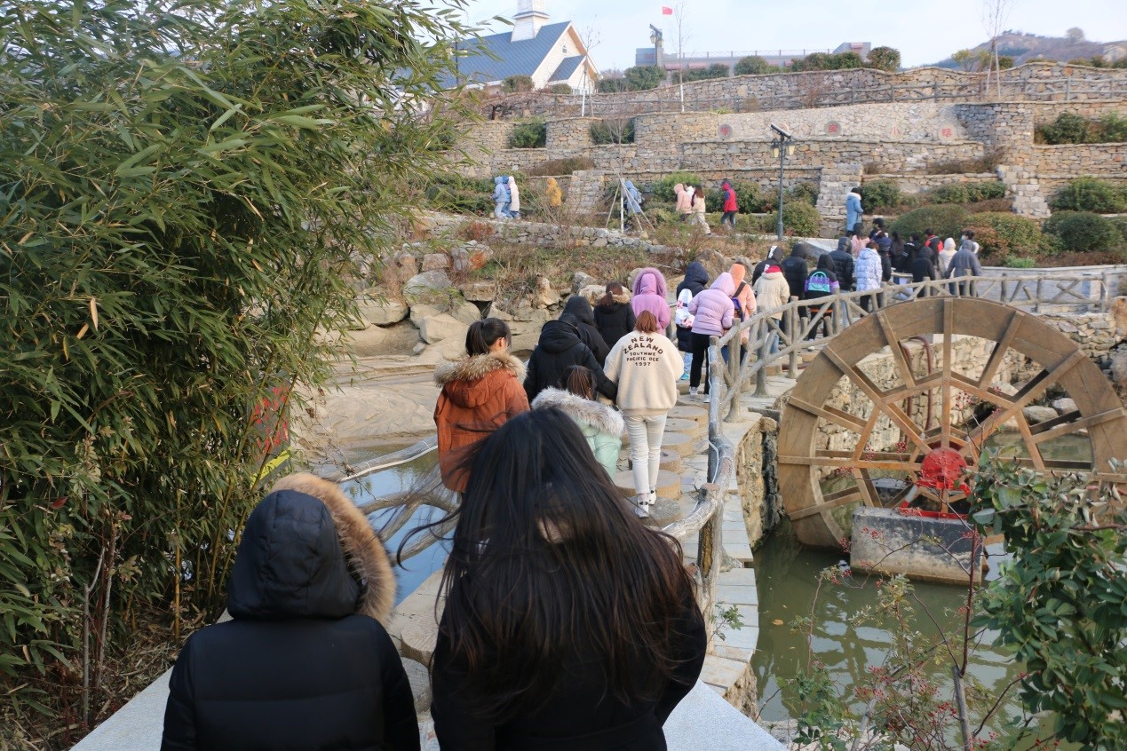 作为实地调研的最后一站,师生来到背靠英雄孟良崮、南望巍巍大蒙的樱之崮小镇田园综合体实地调研。樱之崮抢抓孟良崮乡村振兴示范片区提升机遇,依托英雄孟良崮的强大品牌影响力,以村庄为载体、以文化为灵魂,着力彰显孟良崮精神、沂蒙精神在实施乡村振兴战略中的深厚伟力,大办进行田园综合体建设,贯彻落实“绿水青山就是金山银山”绿色新发展理念。通过调研,师生深入了解沂蒙精神在乡村振兴方面的助力与新兴产业的发展状况,在感叹这山清水秀的美好田园生活的同时,深刻体会到“绿水青山就是金山银山”绿色新发展理念的正确性。