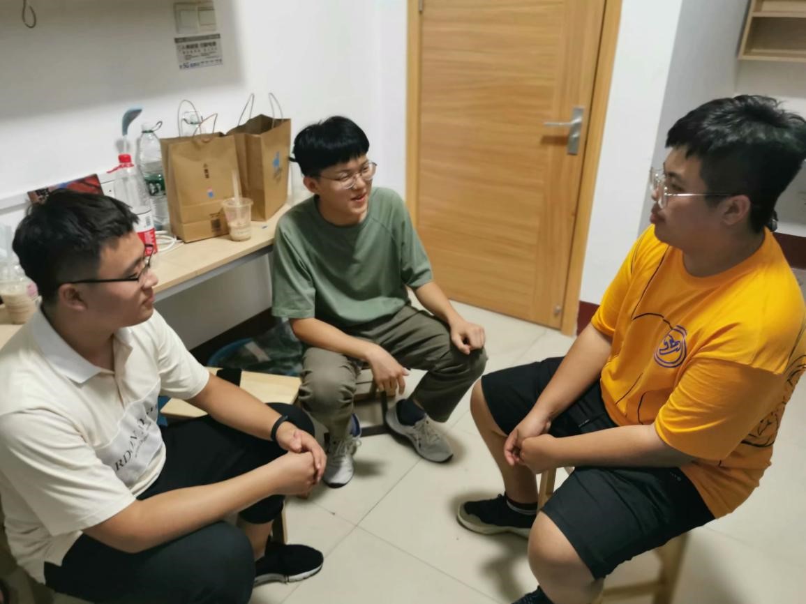 为及时了解新生状态,做好新生入学教育工作,帮助新生适应大学生活,增强新生对校园的归属感,9月19日晚,学部党委副书记张忠凯、学院团委书记王元如、2020级辅导员耿晓敏走进2020级新生宿舍,慰问新生,深入了解新生相关诉求,详细地询问新生的家庭情况和入学感受,以及对新学校新环境的意见。同学们纷纷表示对学校的迎新工作很满意,对即将开始的大学生活充满期待,新生们还就自己关心的问题与老师们进行交流。老师们希望同学们尽快适应大学生活,制定目标,做好规划。同时也提醒同学们要注意个人生命财产安全,安全用电,随手锁门,保管好个人财物,在疫情封校的形势下,要注意个人和寝室卫生,并叮嘱新生有困难可以向辅导员反应,共同解决。通过交流,帮助新生尽快适应新学期的学习生活,也激励着新生们在今后的学习和生活中踏实奋斗,走出属于自己精彩人生。