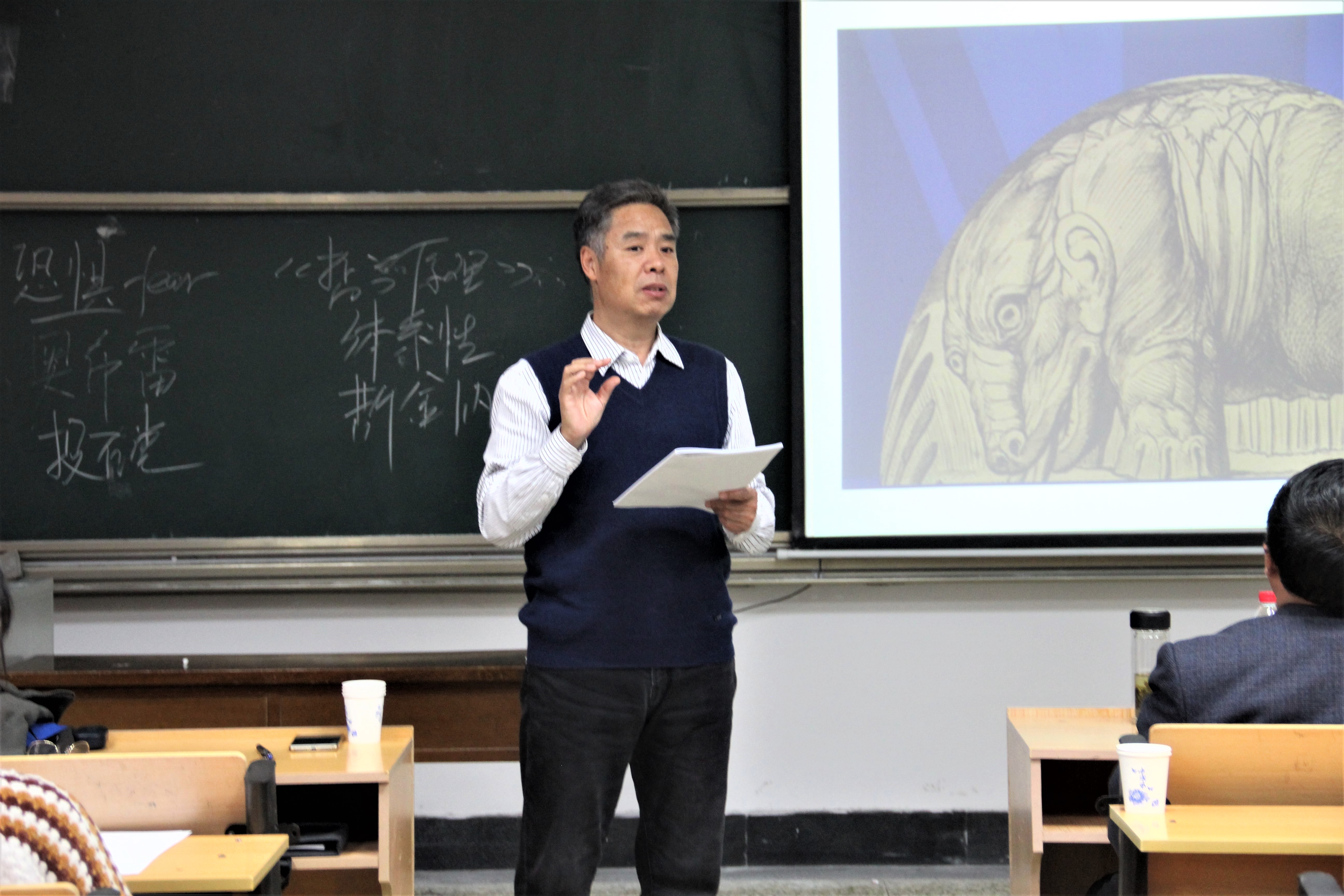 随后,段文阁老师结合前期同行互评听课情况就本场比赛发表精彩点评。他首先肯定了教师们在备课、课堂互动及授课过程中的表现,同时就比赛选题、课的导入、语速及板书设计等方面提出了意见和建议。