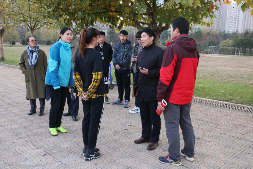 张忠凯代表学部首先表达了对冬训队员的鼓励与支持,赞赏他们坚持训练、为学部争光的精神,他还提醒队员们训练的同时不要忽视日常学习。宋钧文与陈敏表示季节更替、天气转寒,大家在训练时应该注意保暖,保重身体。王元如和张林也向冬训队员询问了目前的训练状况,队员一一详细作答。最后,宋钧文、张忠凯等对于冬训队员孙亚楠荣获省级大学生锦标赛女子400米栏第一名的成绩给予了充分肯定,鼓励孙亚楠继续努力,再创佳绩。