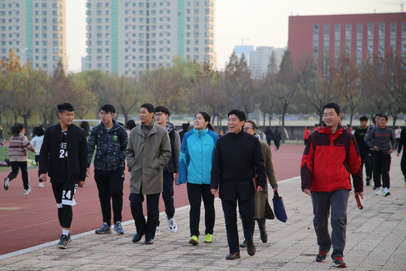 体育部部长李增辉的带领下于西操场进行冬训。马克思主义学部党委副书记宋钧文、张忠凯,读漫屋