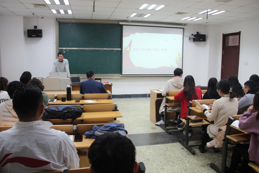 本次党课活动,张忠凯书记以“当代大学生的‘初心、使命’”为主题,重点讲述了共产党员的初心和使命、新时代中国共产党员的初心和使命、当代大学生的初心使命、以及初心使命、奋斗不息四个方面。张书记强调,青年大学生要牢记“中国共产党人的初心和使命,就是为中国人民谋幸福,为中华民族谋复兴”,新时代的大学生应该从思想、路线方针、党的建设这三个方面努力践行大学生的“初心、使命”。第一,要多学习理论知识并将其与自身实践相结合,在学习的过程中多思考,争取能为国家发展建言献策,为将来成为社会主义现代化建设之栋梁打下坚实的基础、做好充分的准备。要利用好“学习强国”、“灯塔在线”等学习平台,既要夯实自己的理论基础,认真学习中国特色社会主义思想,又要坚持与时俱进,了解国内外时事政治,这既是党员考核的重要标准,也是党员党性的体现。第二,要加强与周围同学的联系,不能高高在上,投票选举出来的党员身份意味着责任与义务而非高傲的资本,要不忘写下入党申请书时的“初心”,全心全意为同学服务,帮助遇到困难的同学,自觉在学习生活上为周围同学树立榜样,不愧对自己所拥有的党员身份,不愧对胸前那枚光荣而又鲜艳的党徽。第三,要严格遵守党章党纪党规,时刻牢记自己的党员身份,不忘入党宣誓时的那一片“初心”,保持党内团结,肃清党内作风,密切联系群众,树立党员形象。