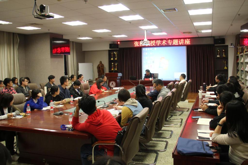 首先,王维先院长向在场的师生介绍张江教授的个人履历和学术成就,张江教授长期从事文艺理论和文学批评研究工作,近年来主要致力于当代阐释学的构建和阐释学学科建设,2014年提出原创性理论“强制阐释学”,在中外学术界产生重要学术影响,2017年进一步提出原创性理论“公共阐释学”,得到德国、英国、意大利等国家历史学、哲学、文艺理论界专家学者的广泛关注。