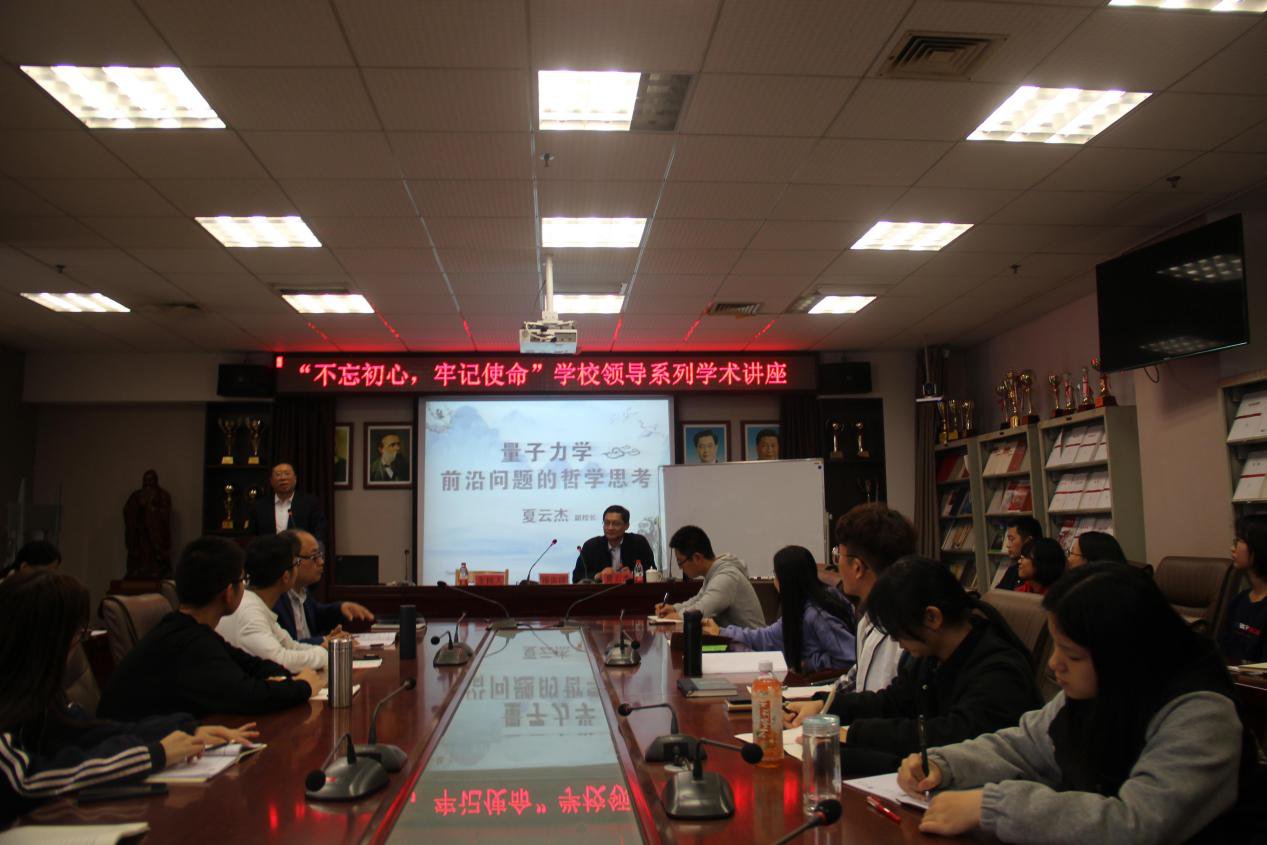 师生作“不忘初心、牢记使命”学校领导系列讲座,讲座题目为“量子力学前沿问题的哲学思考”。本次讲座由读漫屋