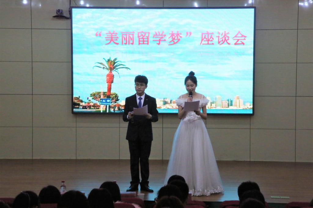 团委学生会国际化服务部与学习部联合举办,邀请席亚萍、孙春惠、陈冰娴、王丽丽、何思雨和王思贤、王星普共七名优秀学生代表分别分享外出访学经历以及志愿服务和社会实践经验。马克思主义学院团委书记陈敏、学生会主席团部分成员出席,18级全体同学积极参加。