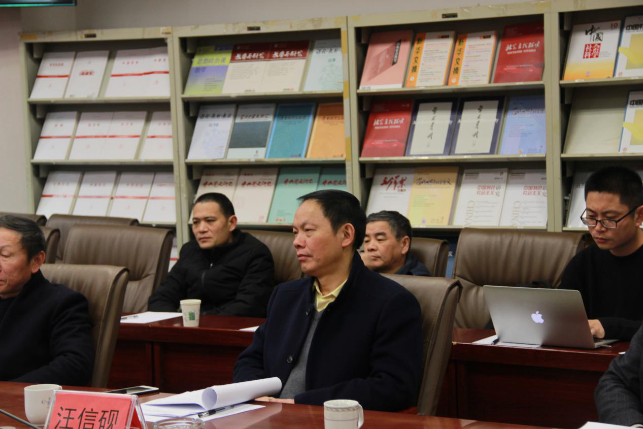 JC909会议室举行。教育部长江学者特聘教授、国家“万人计划”哲学社会科学领军人才,中宣部“文化名家暨四个一批”人才,国务院学位委员会哲学学科评议组成员、国家社会科学基金学科规划评审组专家、武汉大学哲学学院博士生导师汪信砚教授,国务院学位委员会哲学学科评议组成员,全国博士后管理委员会专家组成员,中央马克思主义理论研究与建设工程教育部第一批教材首席专家,湖南省优秀社会科学专家,湖南师范大学公共管理学院博士生导师张怀承教授,我校党委常委、副校长夏云杰,我校研究生处处长李兆祥,我校研究生处日照校区主任徐璐,读漫屋