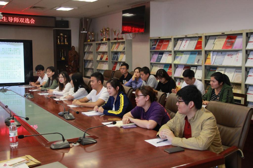 学科点的基本情况,并宣布了双选的原则和流程。会上各位导师热情地向同学们介绍自己的学术背景、研究方向及近年研究成果,提出自己的研究生培养设想。随后新生们进行自我介绍、并说明了自己的研究志趣及未来三年学习规划。双选过程中研究生与导师本着双方自愿的原则,在互相沟通的基础上达成选报意向,学院基于双选情况及各专业导师的具体研究方向和实际教学情况为2018级研究生合理确定了相关导师。