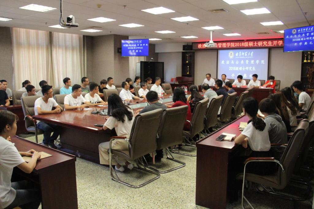 2018级硕士研究生开学典礼在教学楼C楼909会议室隆重举行。马克思主义学部党委书记张立兴、读漫屋
