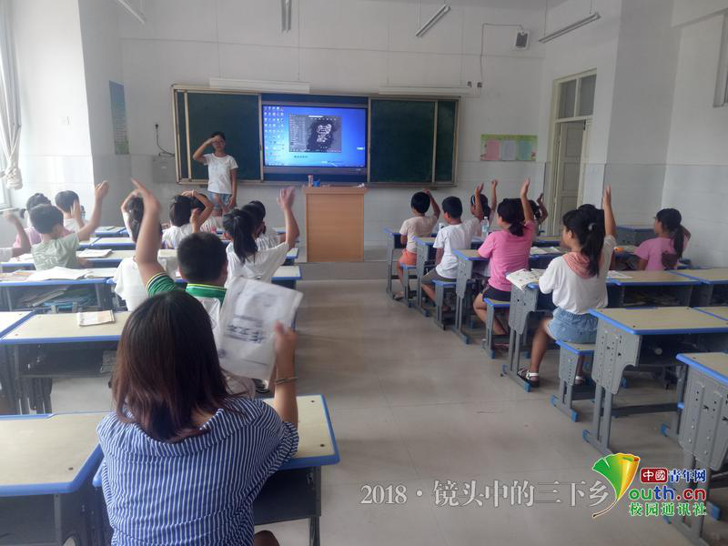 图为支教队员在课堂上教授孩子们手语。中国青年网通讯员 孙淑俊 提供