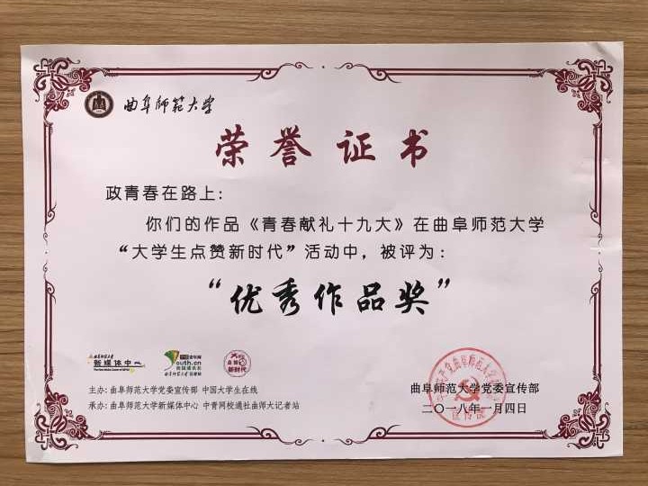积极响应并组织学生参加。在学院的积极推动下,学院学生充分发挥专业优势,在微博、微信等新媒体平台通过动漫、视频等丰富新颖的作品形式宣传十九大精神,积极反映十九大以来的新变化、新面貌,展现青年“政治人”的时代活力。在本次“大学生点赞新时代”活动的开展中,学院荣获“优秀组织奖”。