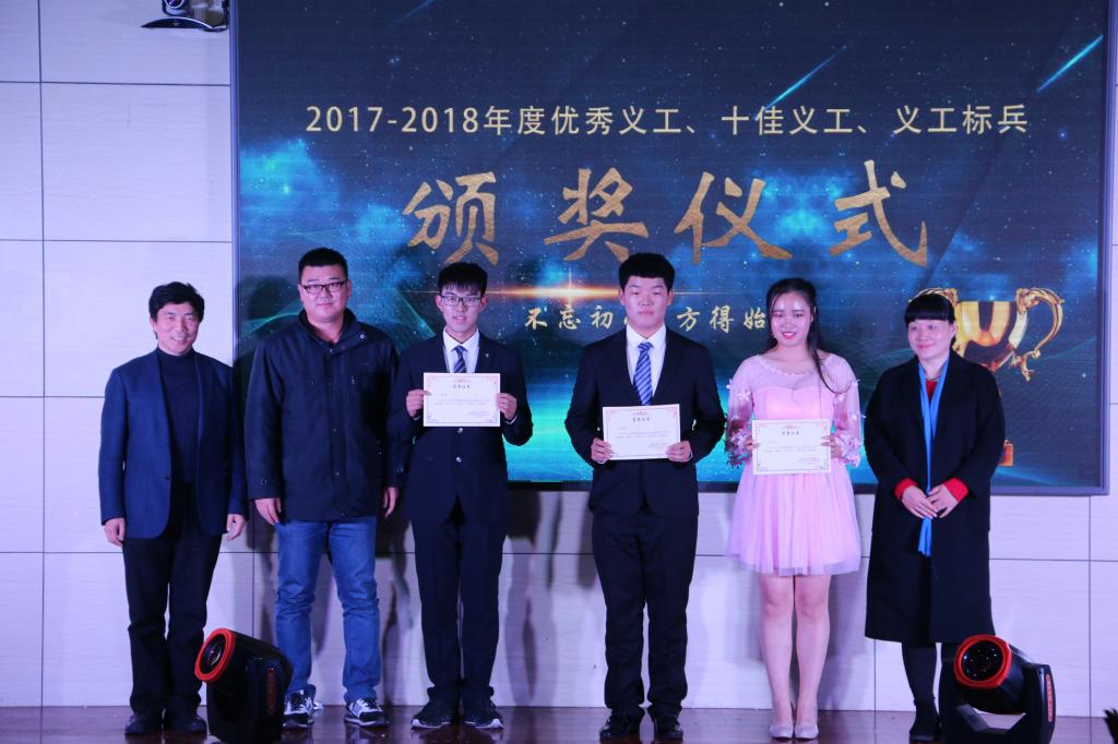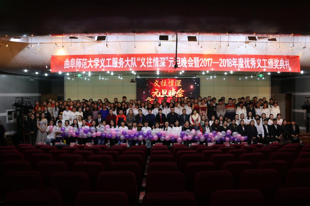 义工服务大队“义往情深”元旦晚会暨2017―2018年度义工颁奖典礼于图书馆报告厅举行,日照市林海社区党委书记孙玫,日照市山海天消防大队负责人刘盈志,日照市义务工作者联合会会长刘超,日照市义务工作者联合会管理员薛东如、陈赛萍、郑秀芝,日照市陈疃镇中心小学教师张霞,日照市结核所大夫上官士超,马克思主义学部党委副书记宋钧文,团委书记陈敏,教师耿春亮应邀出席,2017级全体同学积极参加。