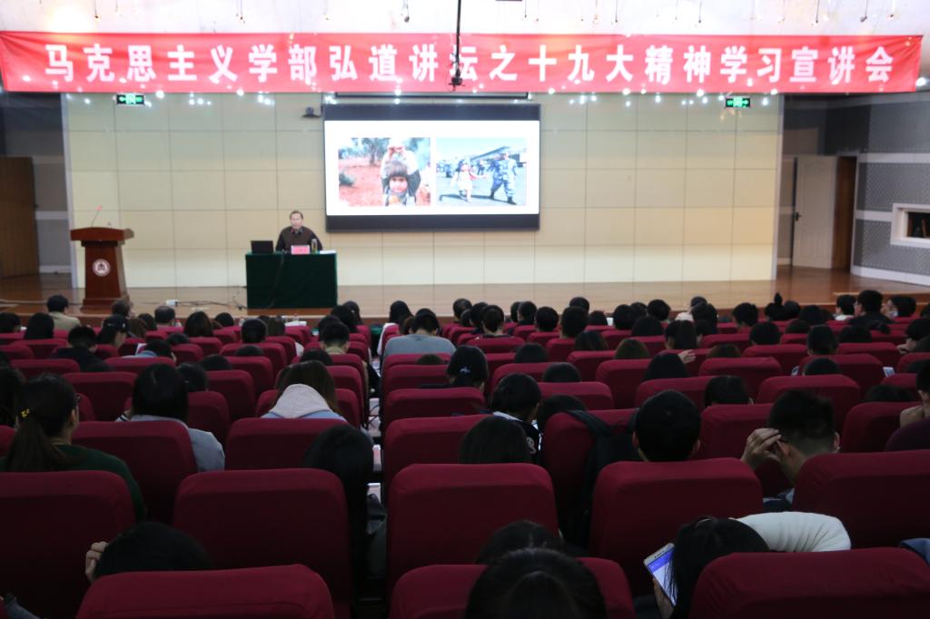 11月7日下午,马克思主义学部于图书馆报告厅举行弘道讲坛之十九大精神学习宣讲会。本次宣讲会由学部党委书记张立兴教授主持,学部主任、马克思主义学院院长李安增教授担任主讲人,学部副主任、读漫屋