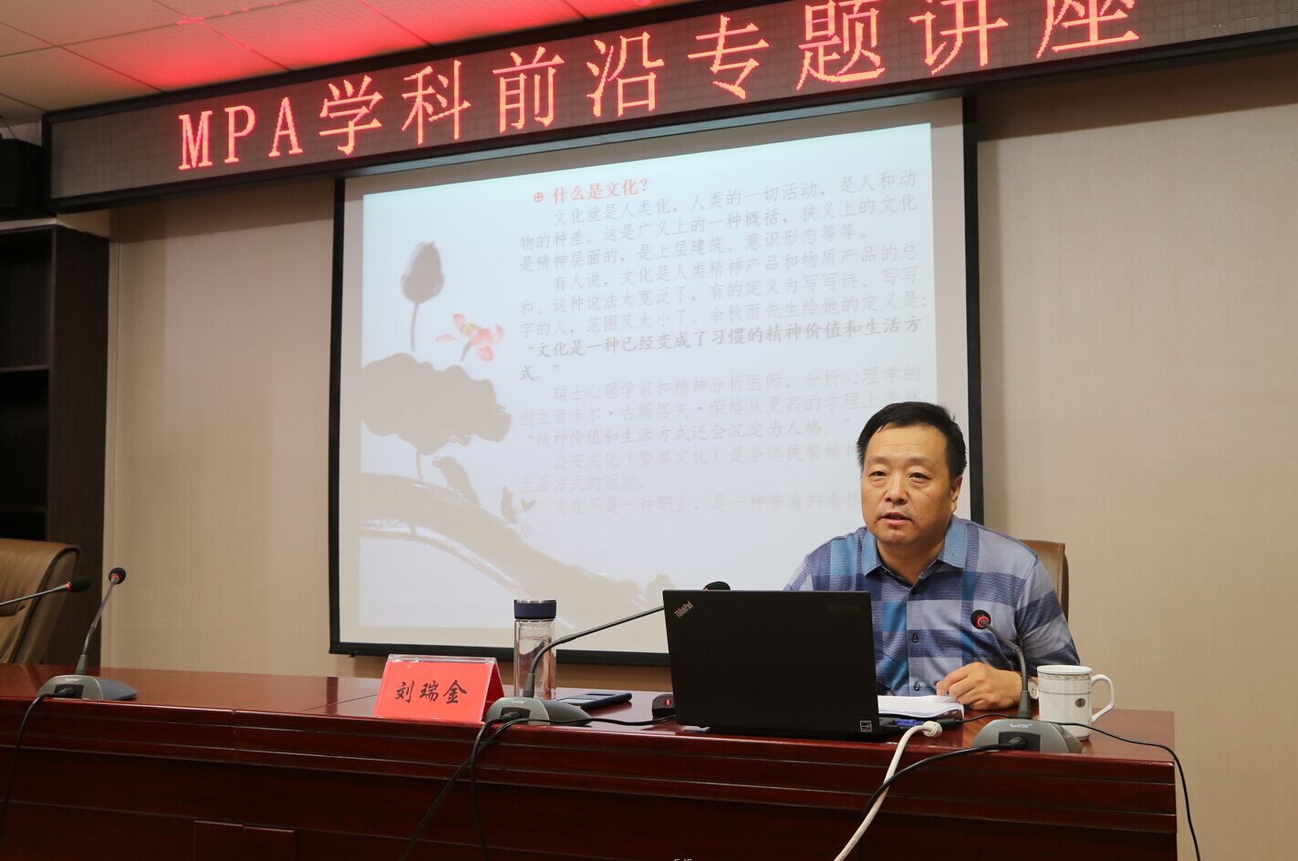 MPA学术报告厅,应学院邀请,日照市公安局日照经济技术开发区分局政委、MPA研究生导师刘瑞金为读漫屋