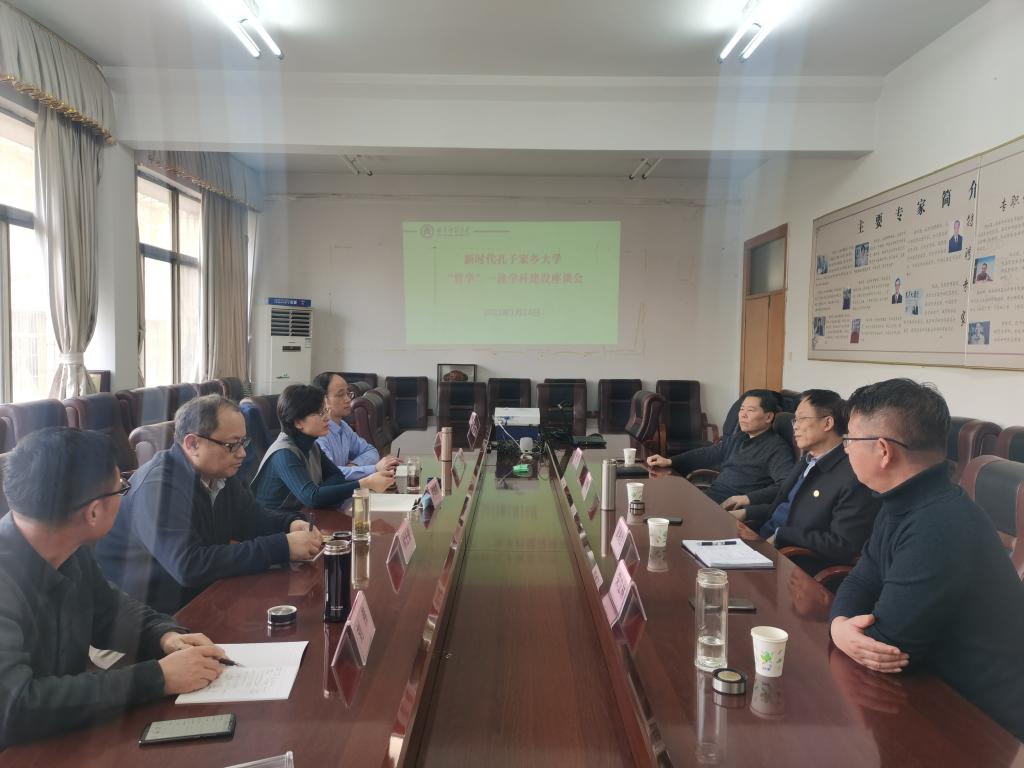 1月14日下午,新时代孔子家乡“哲学”一流学科建设座谈会在孔子文化研究院204会议室举行。学院党委书记卢瑞霞、副院长李增元、副院长林士俊、学科建设办公室主任刘伟,孔子文化研究院院长王钧林、副院长刘彬、副院长周海生、副院长宋立林以及部分教师代表参加了会议。