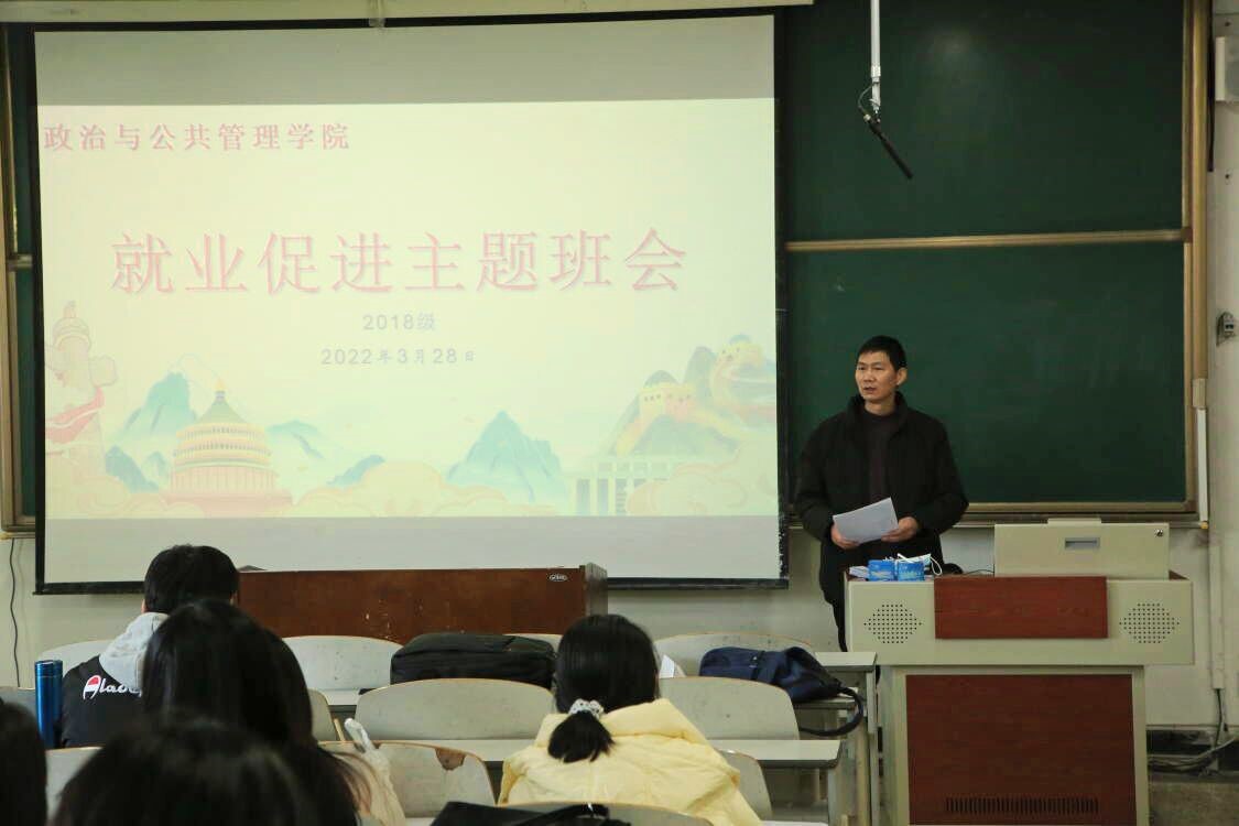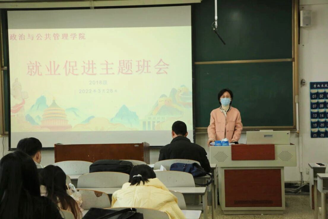 就业促进主题班会于JB102召开,会议由2018级辅导员王元如主持,学院党委书记卢瑞霞出席,18级应届毕业生积极与会。