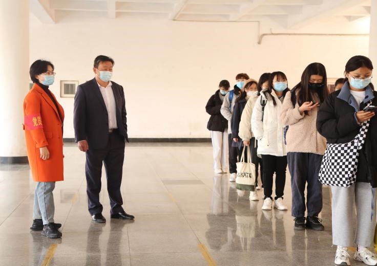 搭建组织架构,扎牢疫情防控“主心骨”。学院领导召开各类疫情防控工作部署会议,解读政策要求,压实责任并层层落实,创新管理方式,设置网格员,密切追踪学生动态,做到精准施策。党委书记卢瑞霞亲临防疫一线参与疫情防控、督导志愿服务。教工党员精准细致进行疫情防控期间学生服务管理,准确摸排学生信息,第一时间走访学生宿舍、教室和核酸检测现场,细心叮嘱同学们疫情防控有关要求、坚持做好班级课堂考勤、通过网格化管理落实宿舍晚点名和帮助志愿者查验健康码等,与同学们共同奋战抗疫一线。