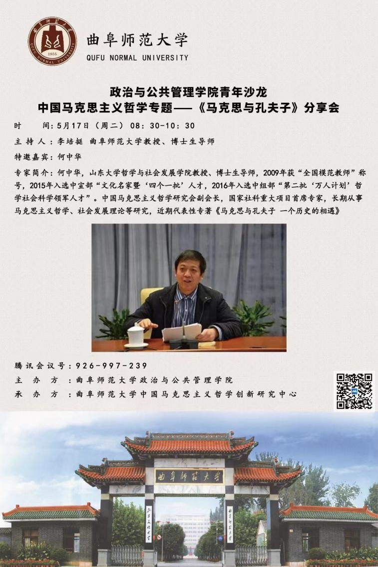引入青年沙龙学术研讨模式。在学院主要领导的大力支持下,于5月17日上午8:30-10:30线上召开了首期青年沙龙“中国马克思主义哲学专题——《马克思与孔夫子》学术分享会”。本次分享会特邀嘉宾是山东大学哲学与社会发展学院何中华教授,此次活动由学院学科办主任刘伟教授在线指导、孙功进老师点评、李培挺老师主持,李永刚、孟祥兴、刘祥乐、陈碧强、封顺帆、赵松等6位青年教师与院内外师友180人参加。