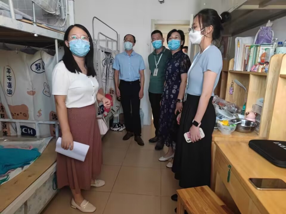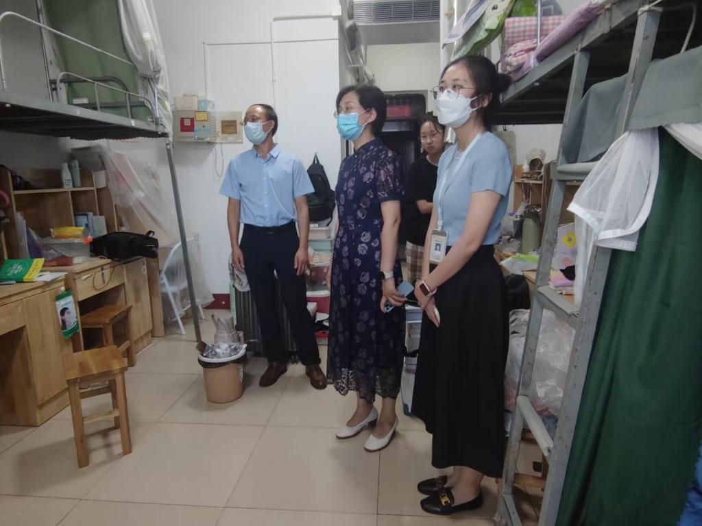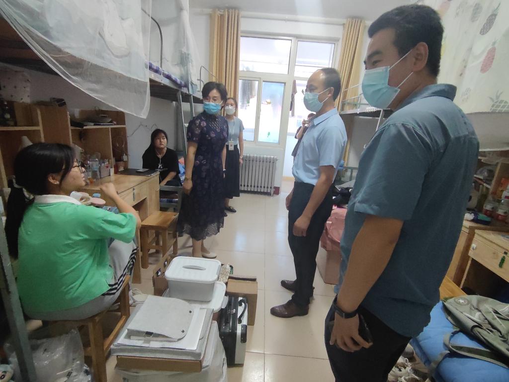 党委书记卢瑞霞、副院长李增元、党委副书记张忠凯和全体辅导员来到学生宿舍走访慰问,检查开学前期准备工作。