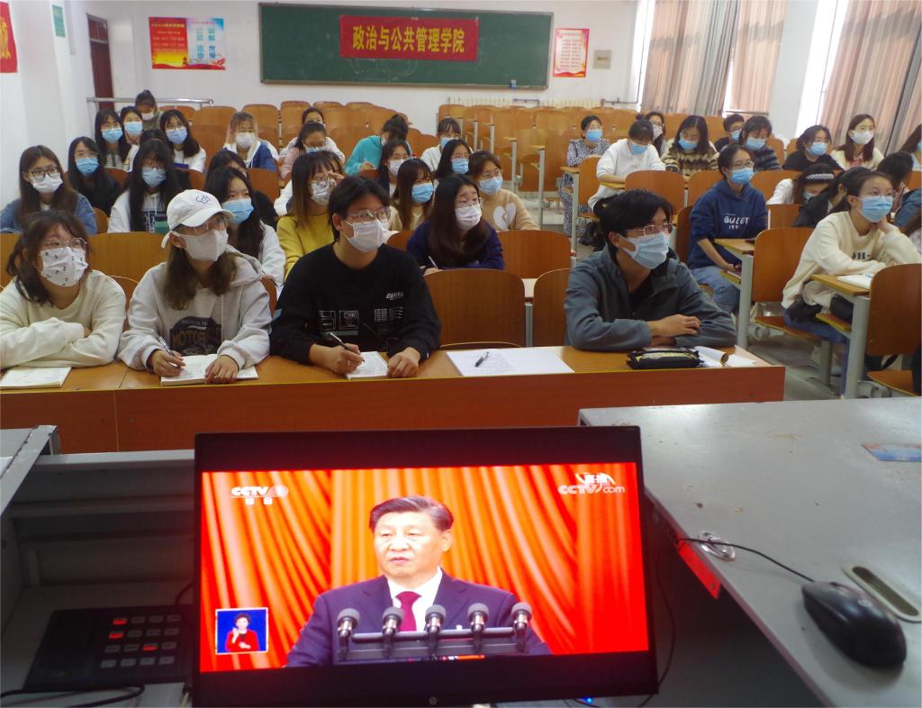 学院2020级政治学与行政学1班团支部、2班团支部观看直播