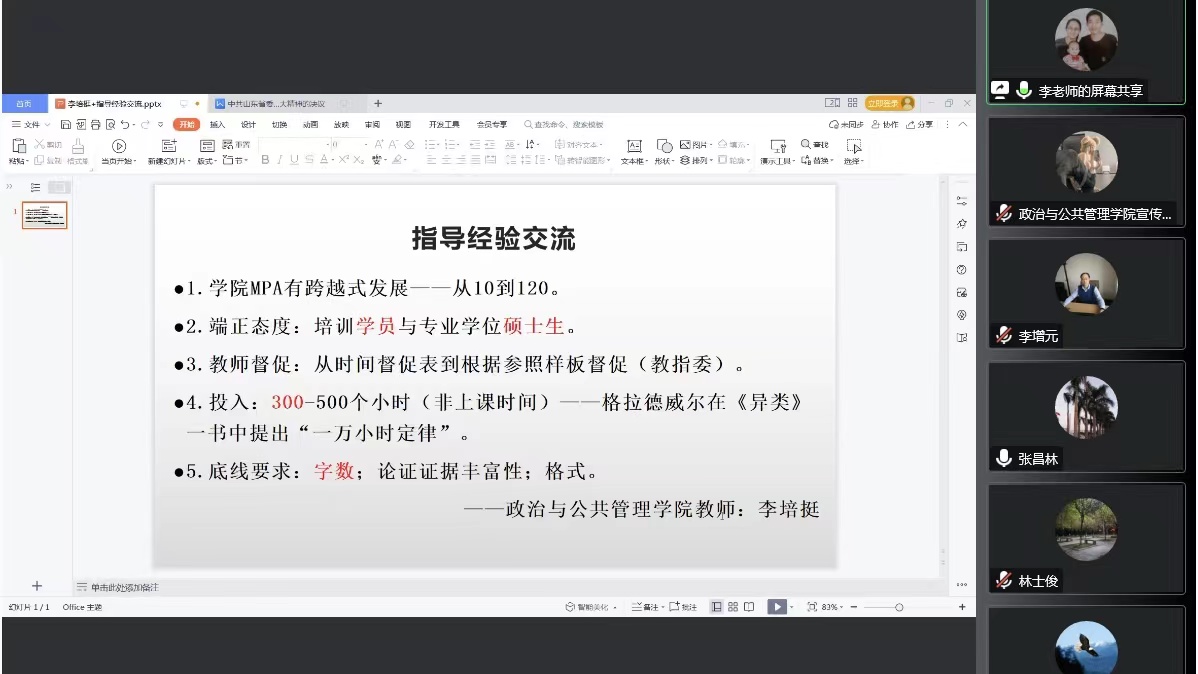 教授李培挺表示,MPA教育在实现跨越性发展的同时,要做到教师督导与学生底线工作两手抓,致力于推动我校MPA教育高质量发展。