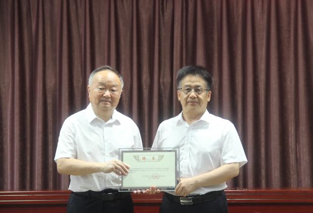 活动中,学校党委常委、副校长胡凡刚向全国人大代表姜卫东颁发校外思政导师聘书。