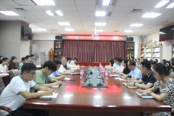 于JC909会议室顺利举行“筑牢思想根基,开创发展新局”主题教育之“全国人大代表面对面”活动第二期暨校外思政导师聘任仪式。本次活动邀请到了山东五征集团有限公司党委书记、董事长、技术中心主任,第十一届、十二届、十三届、十四届全国人大代表姜卫东作了“人民代表大会制度和代表职权介绍”主题报告。学校党委常委、副校长胡凡刚出席,活动由学院党委书记卢瑞霞主持,学院教职工党员、学生党员、入党积极分子、主要学生干部积极参加。