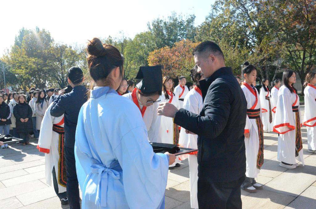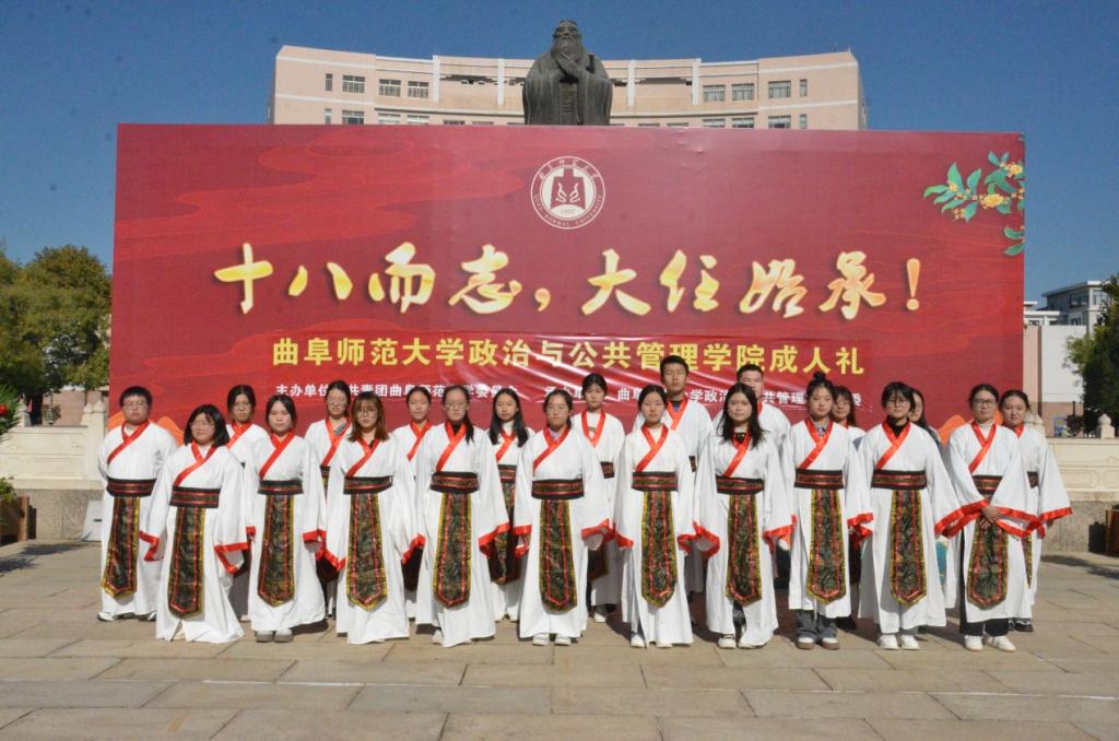 于曲阜校区隆重举办2023级学生成人礼,学院党委副书记张忠凯、团委书记马腾、学生党支部组织委员王元如出席仪式, 2023级全体同学参加活动。