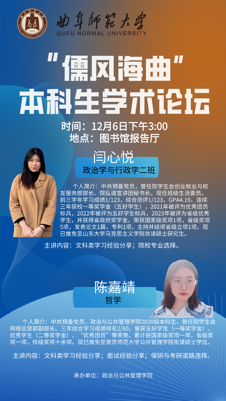 “儒风海曲”本科生学术论坛在图书馆报告厅成功举办。本次活动由读漫屋