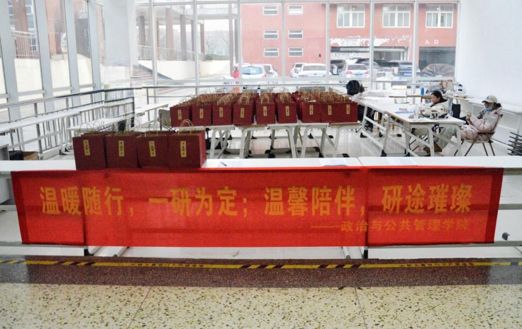 开展考研送温暖活动,为考研学子准备“考研暖心礼包”。学院党委书记卢瑞霞,副院长李增元以及2020级班主任、辅导员于“考研送温暖”活动现场为即将考研的2020级备战学子送去温暖和祝福——一颗颗温暖的心点燃寒冬的热情,一份份礼袋承载着学院对考研学子的深切关怀与鼓舞,礼袋中的甜橙、文具套装寓意学子们心想事“橙”,金榜题名!