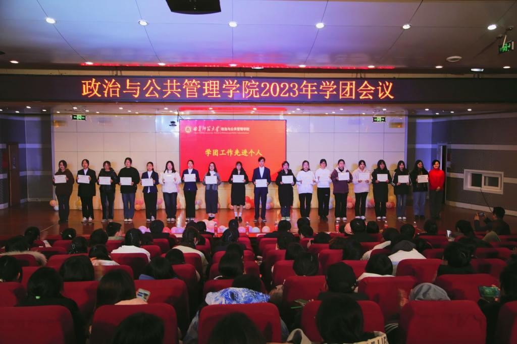 学生工作和共青团工作,对为学院做出突出贡献,争取荣誉的个人进行表彰,为更好的激励政院学子在未来的一年中继续发扬“勤奋、朴实、团结、进取”校风,不断砥砺前行。