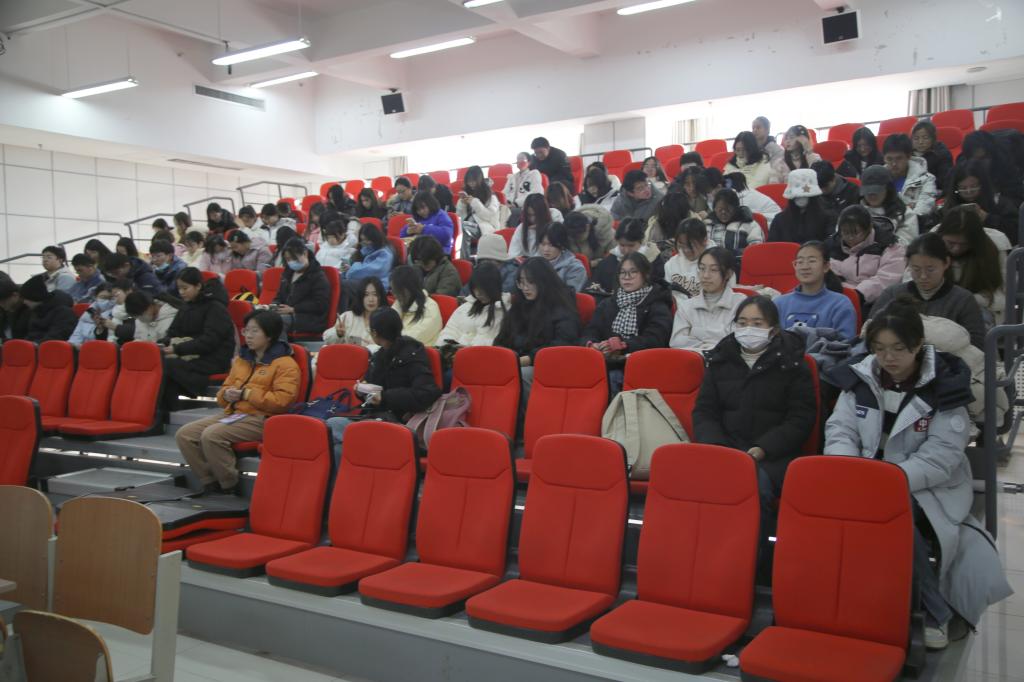 金鑫老师首先对当前的就业形势进行了宏观分析,她提出目前毕业生人数逐年增高,就业形势更加严峻,考研报名人数持续提升,门槛提高,考研难度更大,但社会就业选择日渐多元,就业选择空间更加广阔。随后,金鑫老师为同学们提出具体建议,鼓励大家做好准备,结合自身情况做出合理规划。金鑫老师还从市场供需情况进行分析,对部分热门职业做了前景分析,使同学们对职业概况有了更加清晰地认识。最后互动环节,金鑫老师就学生提出的就业问题进行了解答,同时提醒同学们要发散思维,转变观念,以积极的心态应对求职就业。