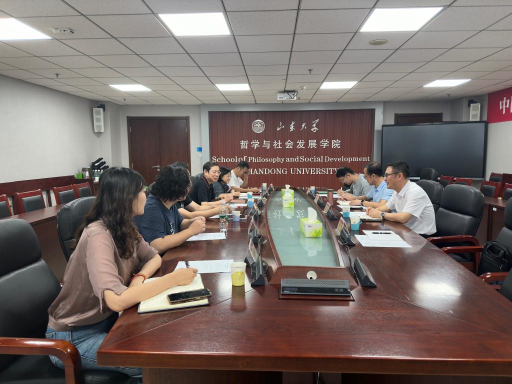 党委副书记、院长李增元、副院长刘伟一行4人赴山东大学哲学与社会发展学院学习调研,哲学与社会发展学院党委书记梅强、副院长吴童立、党委副书记马燕、院长助理李海涛、哲学系主任王丁、团委书记班梦娇参加了调研座谈。