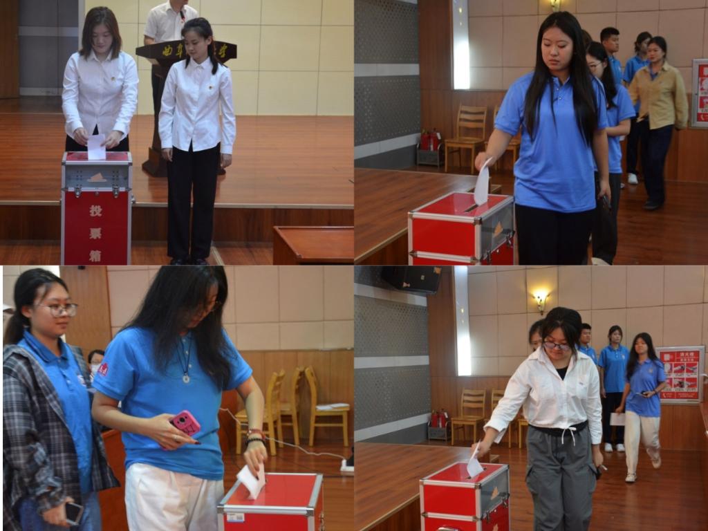 最后,大会进入团代表选举的正式议程。根据选举程序,大会首先公布候选人名单,提名监票人、计票人名单并举手表决。在充分发扬民主的基础上,全体团员积极参与,以无记名投票的方式,选举产生校团代会代表。