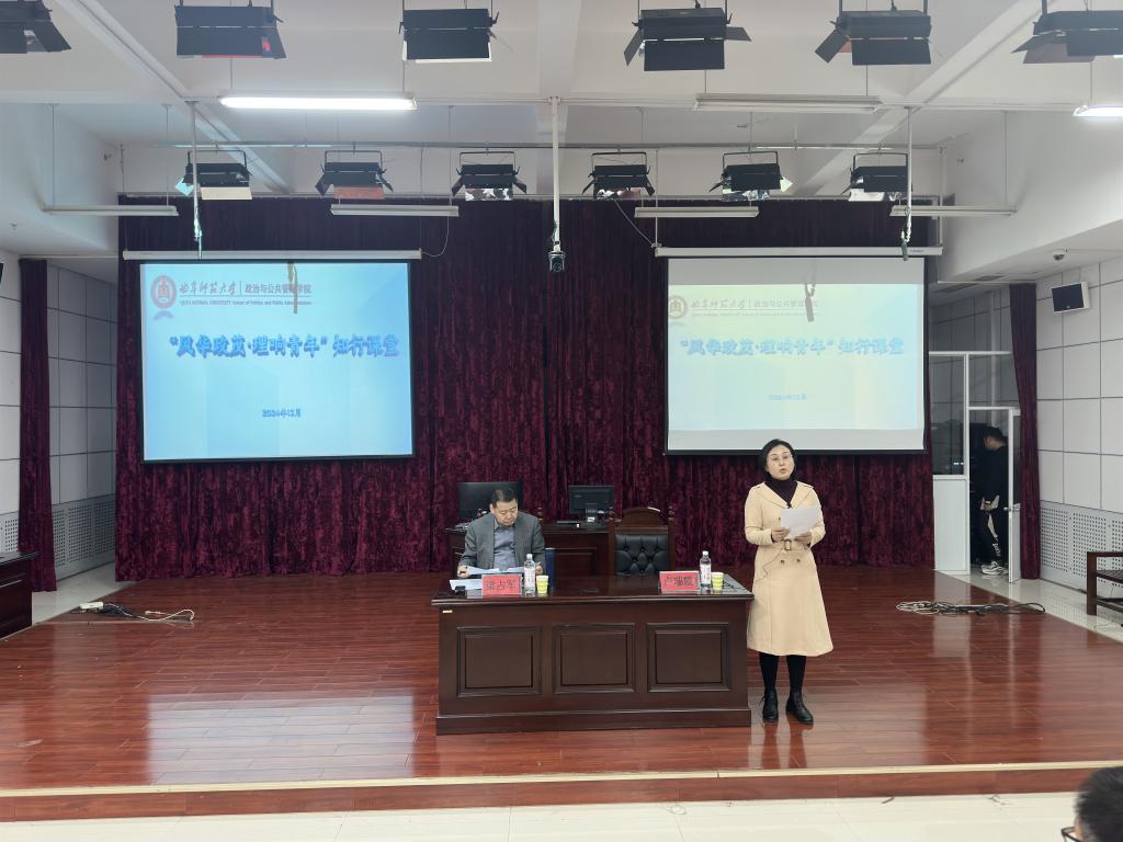 于JS328教室顺利举办“风华政茂,理响青年”知行课堂首场讲座。本次讲座邀请到近代现代史研究会会长、首都师范大学国别区域研究院院长梁占军作为主讲嘉宾,学院党委书记卢瑞霞主持活动,110名学生代表参加培训。