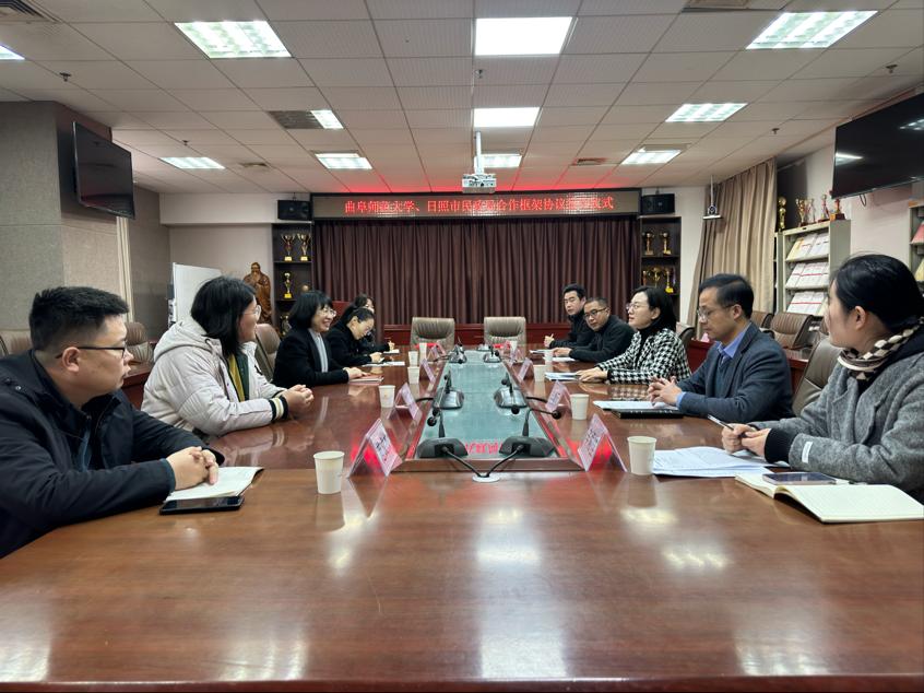 与日照市民政局框架合作协议签约仪式在日照校区C909会议室举行。读漫屋