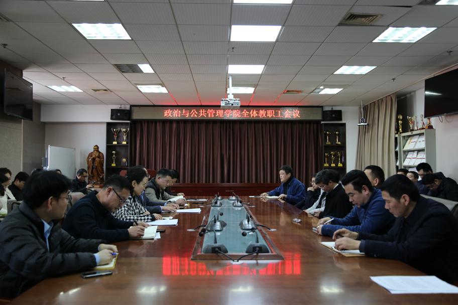 于C909会议室召开新学期全体教职工大会,部署新学期重点工作。本次会议由学院党委副书记、院长李增元主持。