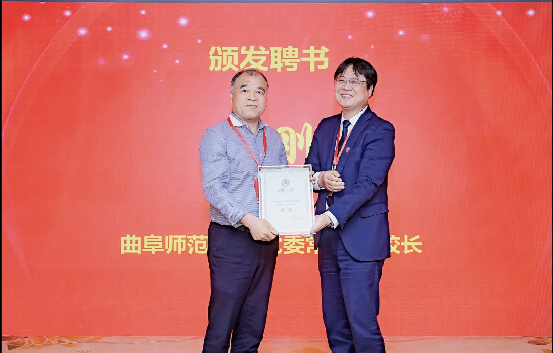 党委常委、副校长刘刚为政治分会副会长兼秘书长、政治系1990级校友孙晓红颁发聘书