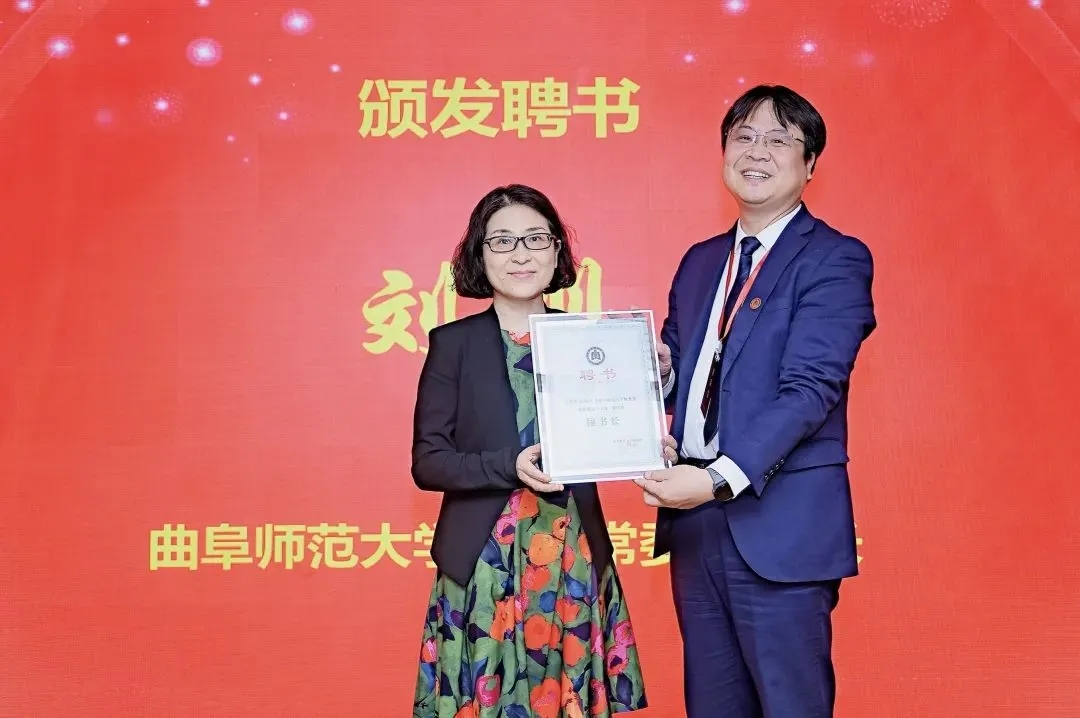 党委常委、副校长刘刚为政治分会副会长、政治系1999级校友贺妮颁发聘书