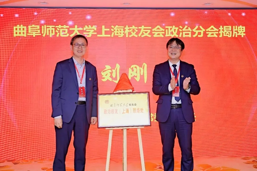 党委常委、副校长刘刚与上海校友会会长鹿传欣为政治校友分会揭牌