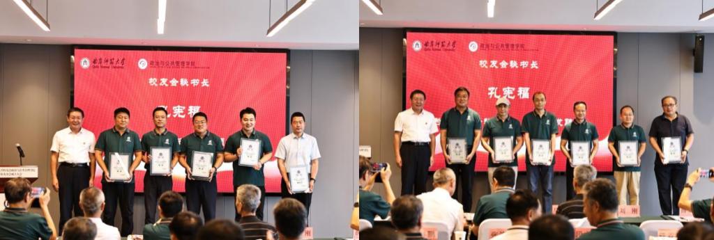 孔宪福为校友分会副会长王保生、王慎超等颁发聘书