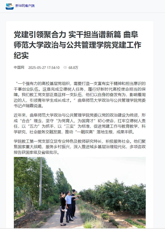 学院教工第一党支部立足专业特色及教师研究特长,积极服务社会。他们聚焦国家重大战略,服务乡村振兴,深入推进城乡基层治理现代化,多项咨政报告获国家级及省级批示。