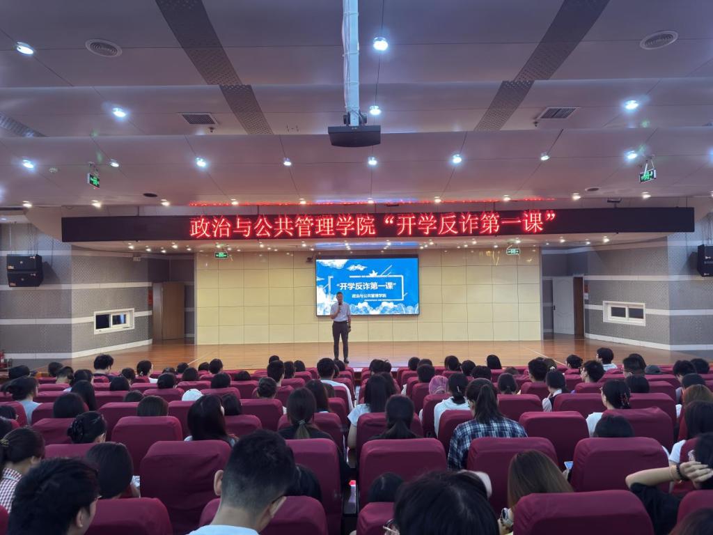于图书馆报告厅组织开展“开学反诈第一课”。本次活动由学院党委副书记张忠凯担任主讲,学院全体辅导员、在校研究生、本科生参加。